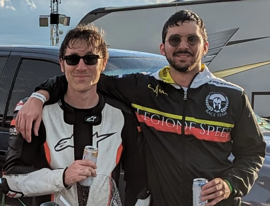 The next morning, finally, it was raceday. It seemed like it had been so much work getting to this point that I didn’t have any anxiety left to dedicate to raceday jitters. I also wasn’t fighting for a championship, so everything was pretty chill. I was able to simply appreciate that I was going to be out racing for about an hour that day. The easy vibes continued when I arrived. The bike was teched and all we had to do was get in some morning practice, put on some fresh slicks, and qualify with a time quick enough to get us in the front half of the pack. Rick impressed immensely in this regard by going out and laying down the time he was instructed to achieve within 2 laps, and the fastest lap on the Honda that weekend, with a 2:00 flat; mental fortitude. With another flyer he easily could have hit a 1:58. Nick was feeling bullish about our prospects and, after contemplating the bike setup a little more, he made a few last minutes changes to the suspension to pull things back in a direction a bit more suitable to his style. Given that I’d been trying to turn the front end into a Ducati, I think some compromise to make it more comfortable for Nick was fair. We watched some morning races, set up our pit area, and staged the bike for the race. There was one last group chat about the strategy and, with a good enough plan in place, all we had left to do was complete the race. Easy.