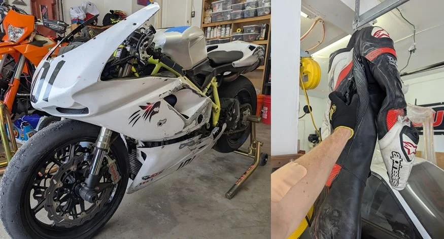 All said and done, the bike is going to need some love, but seems salvageable, all the gear I was wearing is toast, the DAQ box and camera are both smashed to pieces but, on a positive note I came out mostly unscathed. As far as crashes go it was not that bad. It’s now been a week and change since I took my tumble and I’ve had ample time to replay it in my head. The recurring feeling I have about it is that I’m salty I didn’t get to finish the race. I was having loads of fun and was feeling incredibly good on the bike. But again, this is racing. Going into the winter break, I choose to remember that flow state feeling of flying with ease instead of fixating on the crash. I will heal up, fix the bike, replace my totaled gear, and get back out on that track again next season. I’ll see ya’ll next year and, until next time: Never lift!!!!!!