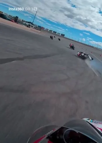 This time, I had an even taller mountain to climb, as I was starting from P10. I was eager to accept the challenge, though, and took my spot on the grid with a smile on my face. Lights out and another great start that immediately took me past a few riders. That fresh rear was a boon and I took full advantage as I jetted around another rider on the outside of turns 1 and 2. I was finally consistently marrying my signature hard braking to my newfound cornering speed and took 2 more riders on the entry of 3 with a brave braking marker. By the time we settled into the infield, I realized that I’d never felt so good on Duc Prime; it was a legitimate flow state moment. Things were clicking beautifully and it seemed like everyone in front of me was getting bigger through my Shoei visor. Goooooooo!!!