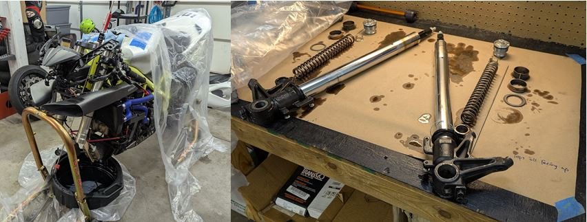 It was now the Wednesday before Round 5. True to my typical luck of feast or famine, in addition to truck problems and camping provisions being on my plate, Duc Prime’s fork seals had started leaking at a concerning rate. Had Round 5 been at HPR, I’d simply have topped off the fork fluid and sent it, but you do NOT mess around with potentially faulty forks at PPIR unless you’re willing to eat shit in turns 1, 2, or 7, all remiss with substantial undulations that will challenge even an Ohlins-equipped bike.
